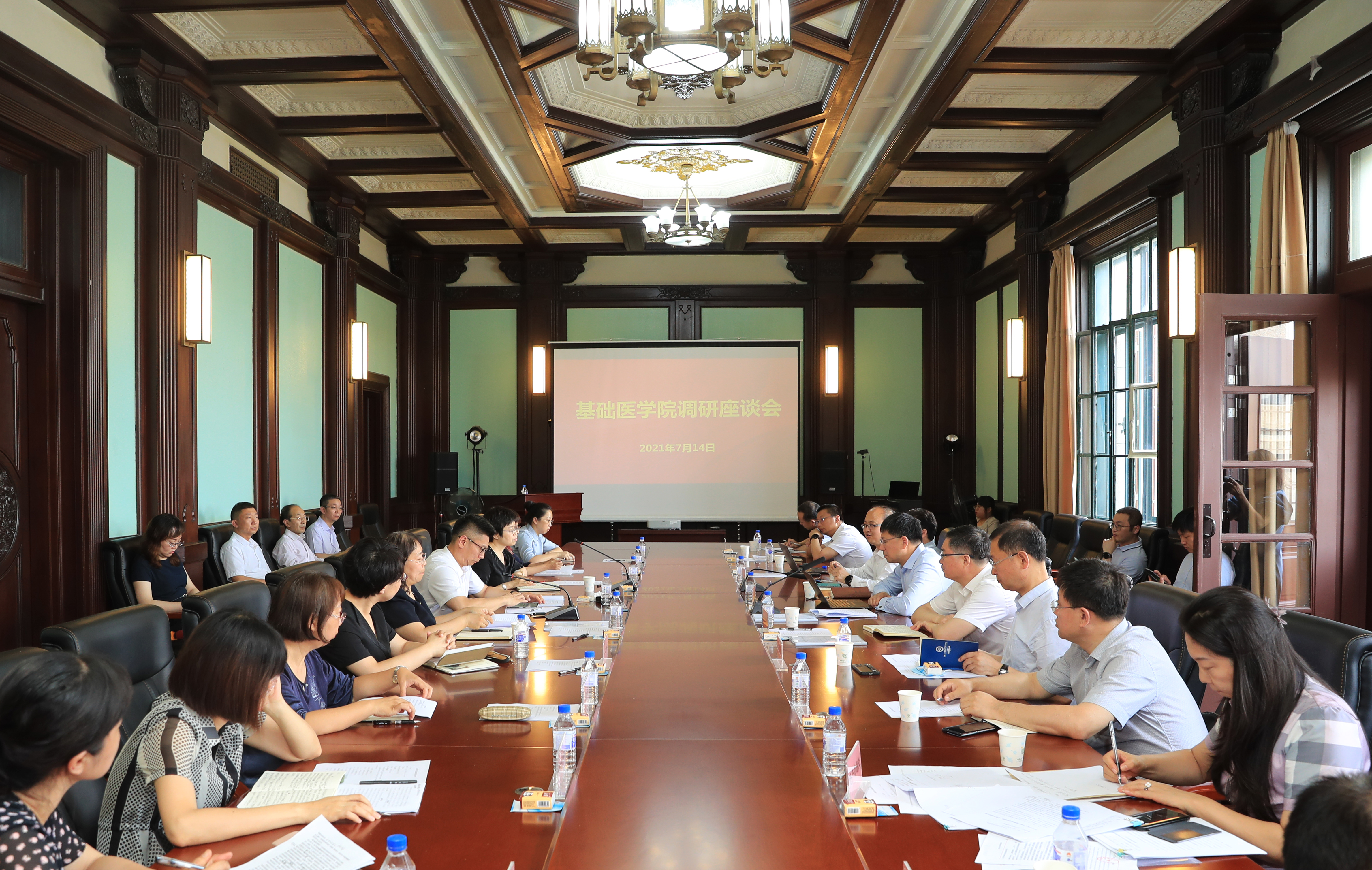 院长王放汇报了学院人才培养、新医科建设等发展建设情况,学院党委书记王晓荣汇报了学院党史学习教育和党建工作情况。学院领导班子成员、学术委员会主任委员、教学委员会主任委员、教师代表参加座谈并交流发言。
