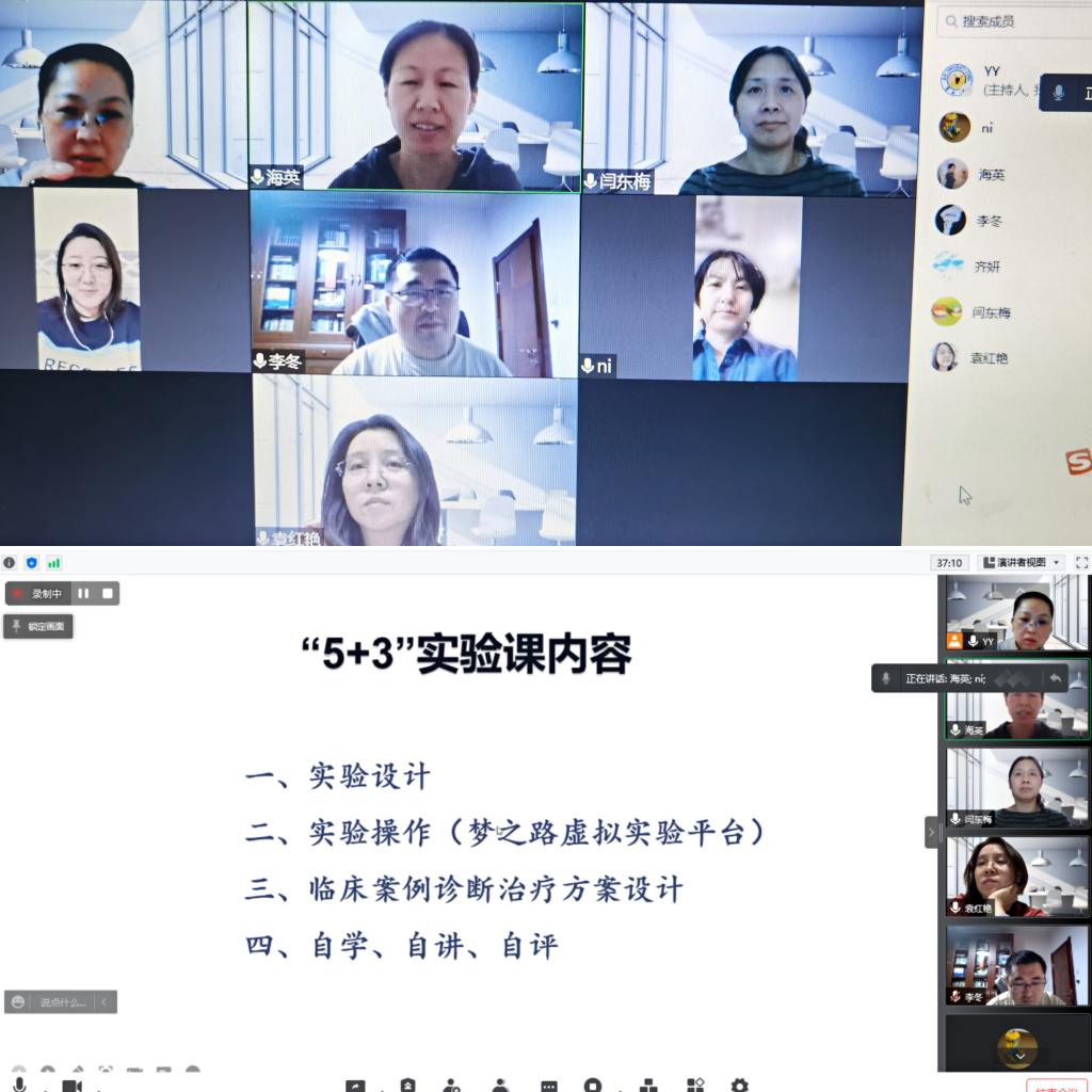 免疫学系于3月22日组织本学期全体实验授课教师开展了课前讨论与集体备课。首先杨巍老师强调要以“利用线上教学优势、还原线下课堂教学”为理念,以保证学生最佳学习效果为目标,结合抗疫思政融入课堂的思想,讨论制定了医学免疫学实验课程的总体实施方案。随后,闫东梅老师和付海英老师分别介绍了医学五年制和“5+3”两个教学轨道的实验课整体内容安排、准备工作及注意事项。全体授课教师就课程设计、内容及实施等方面进行了热烈的讨论,最终明确了本学期医学免疫学实验课线上授课时应遵循的几点原则: