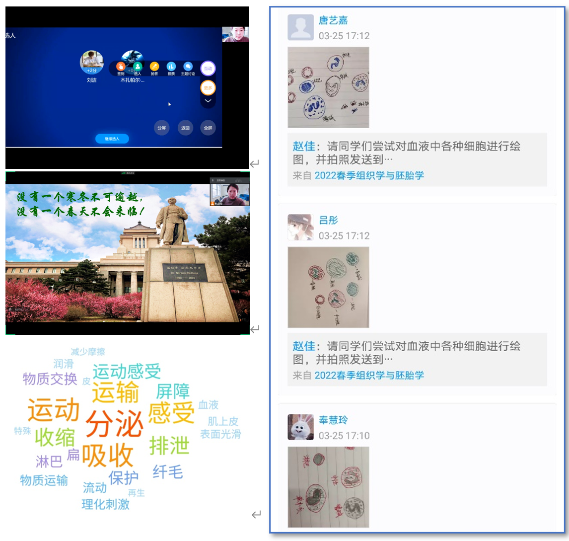 2022年春天,我们再次遭遇新冠疫情的袭击,面对疫情,共克时艰,组织学与胚胎学系全体教师沉着应对,立即有序转入线上教学。作为吉林省一流本科课程,学系在保质保量完成线上教学任务的同时,深化组织学与胚胎学信息化教育模式改革,建立以学生为中心,高效的互动模式,提高线上教学效果,保障线上教学高质量完成。