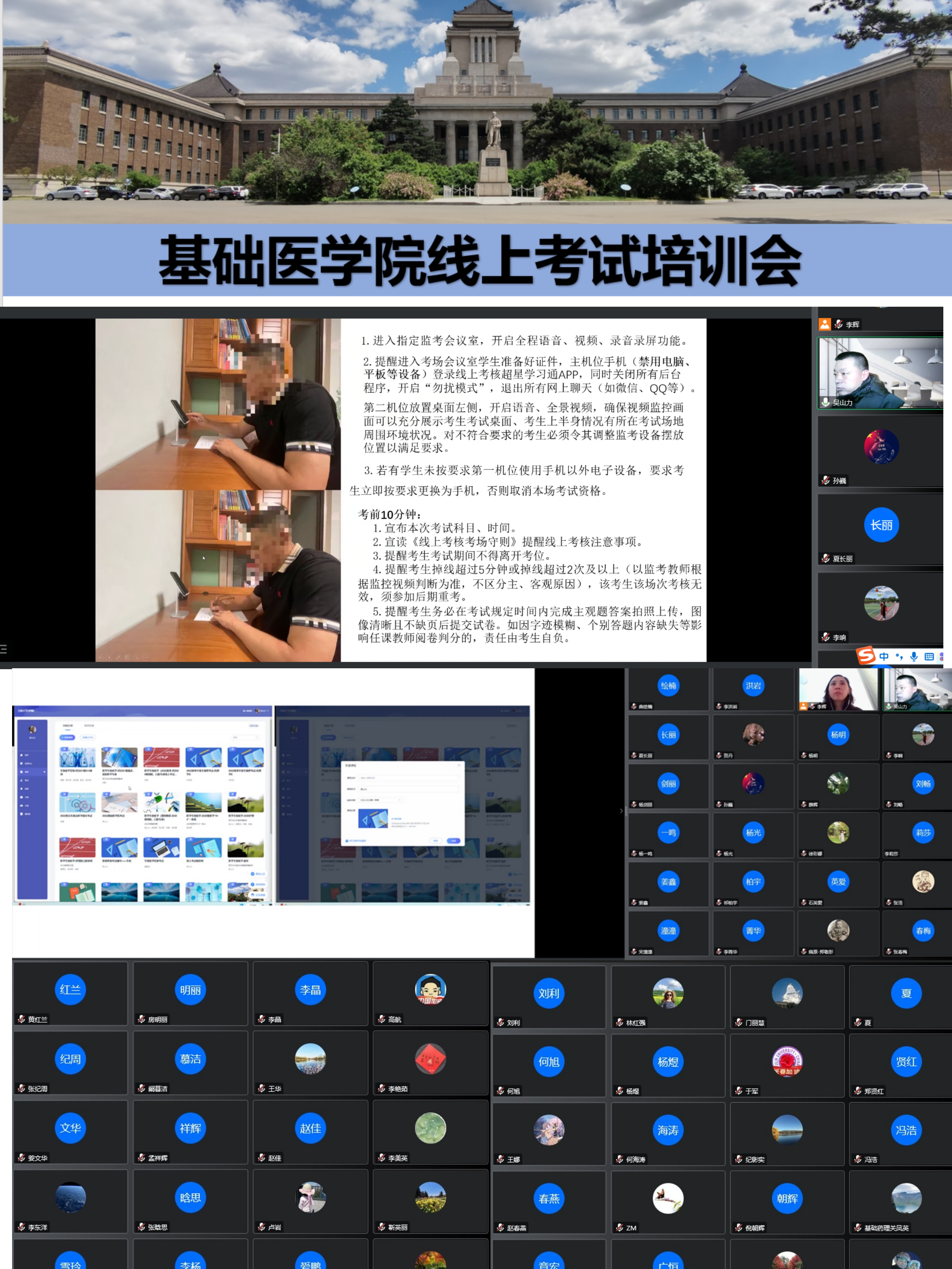 生物化学与分子生物学实验中心主任吴山力老师。吴山力老师从考试分班与设置、建立试卷、线上监考防作弊功能设置以及试卷批阅等多个方面详细讲解了 “学习通”平台在线考试具体操作方法。同时,吴山力老师对腾讯会议学生监控机位的设置要求、教师监考流程以及注意事项进行了解读。与会教师们积极参与讨论,对学生考试中手机切屏、学习通掉线及机位摆放等情况提出问题,吴山力老师逐一进行了解答。会后,教务办共享了本次培训交流会的PPT和录制文件,供教师们反复学习。