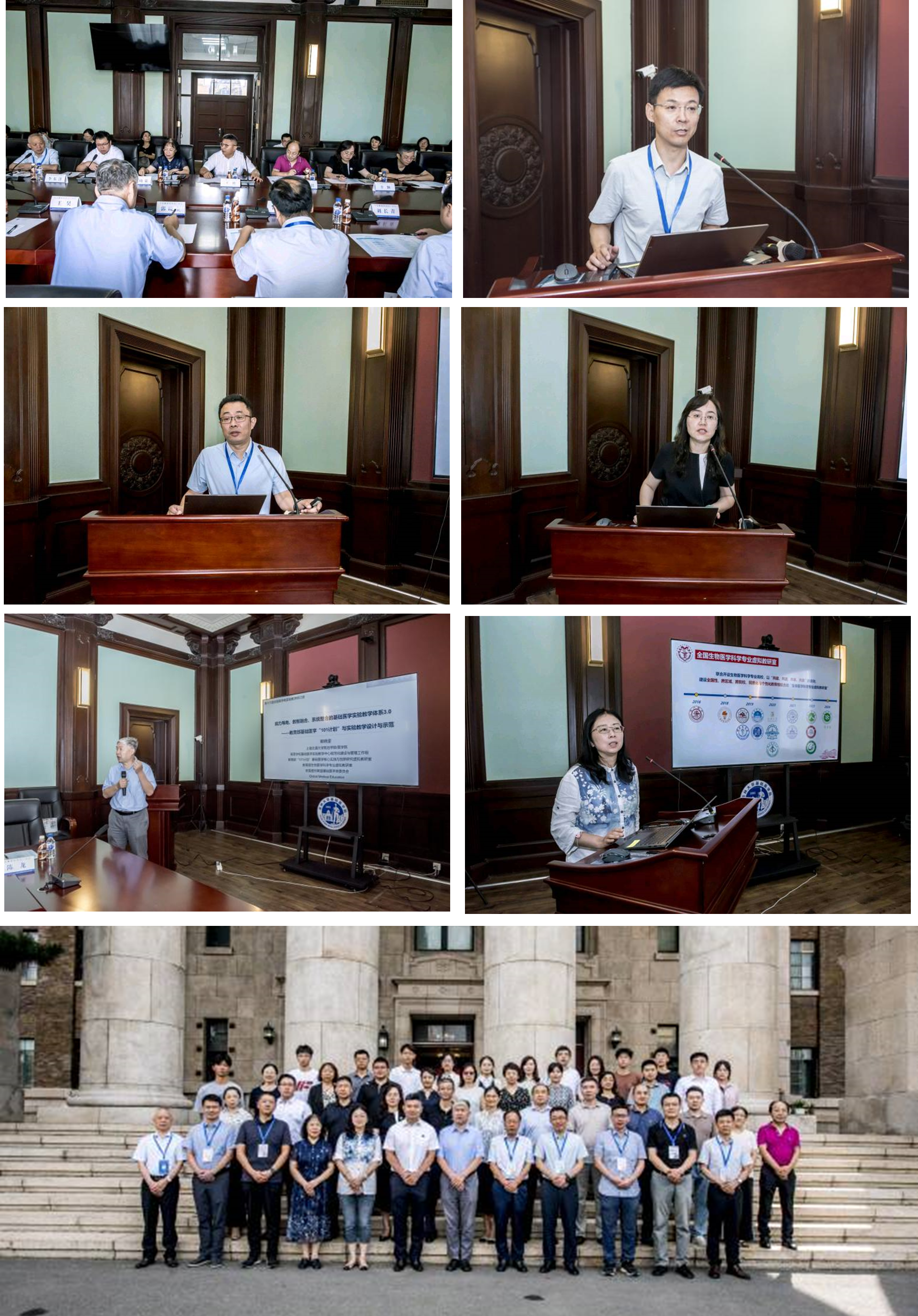 副院长辛颖教授分别结合学科专业建设理念、创新人才培养模式、师资队伍建设、办学特色成果、教学实施方案等方面进行主题汇报及经验分享。生物医学科学专业虚拟教研室负责人郭晓奎教授介绍了基础医学“101计划”与实验教学体系,强调“四个一流”建设的重要性,提出实验教学为中心的混合教学机制,打造能力导向、数智融合、系统整合的基础医学实验教学课程体系,大力培养基础医学拔尖创新人才。最后,由上海交通大学医学院副院长王昊教授对2023-2024年度全国生物医学科学专业虚拟教研室工作进行总结,在过去一年中,知识图谱建设工作取得了重要进展,并优化整合既往培养方案。随后,与会成员单位对虚拟教研室未来的工作内容、实施方案、运行管理等进行讨论,协商2024-2025年虚拟教研室主要工作计划。