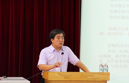 基础医学、临床医学等学科主任、教学组长、骨干教师、教学管理人员及相关专业学生作了以《国家医师资格考试和医师准入要求》为主题的报告。他从临床执业医师的基本要求(准入标准)切入,全面细致地从执业医师资格考试基本设计与实施、全国执业医师考试的基本情况、医师资格考试存在问题与改革设想等多个方面为师生进行讲解,他希望对医学生进行有的放矢的培养,把学生培养成为合格的医务工作者。何佳作了《 f95zone