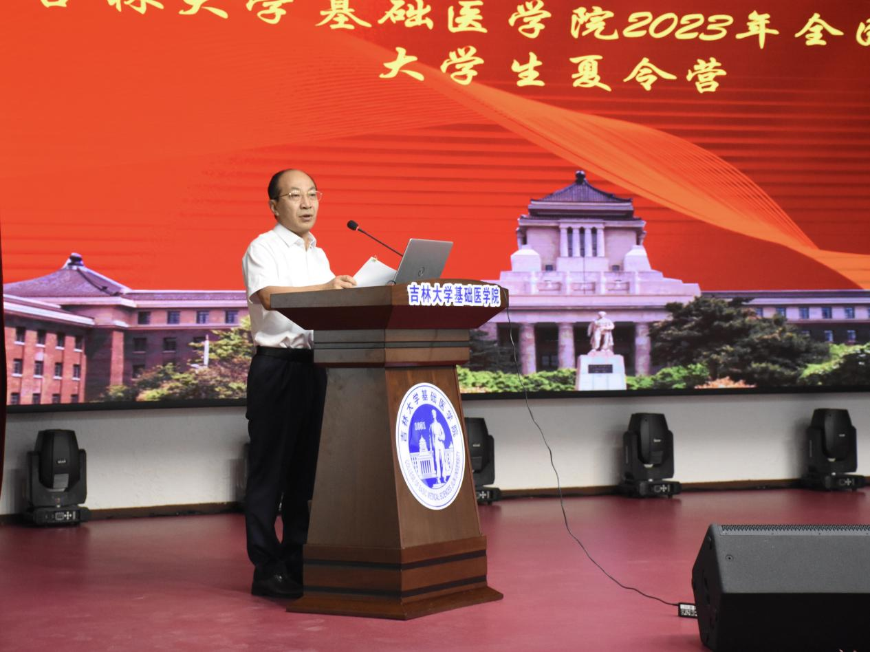 院长王放教授致开营辞,他代表学院对参加本次夏令营的同学表示诚挚的欢迎,对夏令营的开营表示热烈的祝贺,并向营员详细介绍了学院的光辉历史与学科特色,阐述了学院的学术传承、优秀的师资队伍、合理的学科设置、一流的学术支撑、前沿的科研成果、丰富的学术资源以及和谐的人文环境,同时也希望同学们立大志、明大德、成大才、担大任,为祖国的医学事业做出贡献。