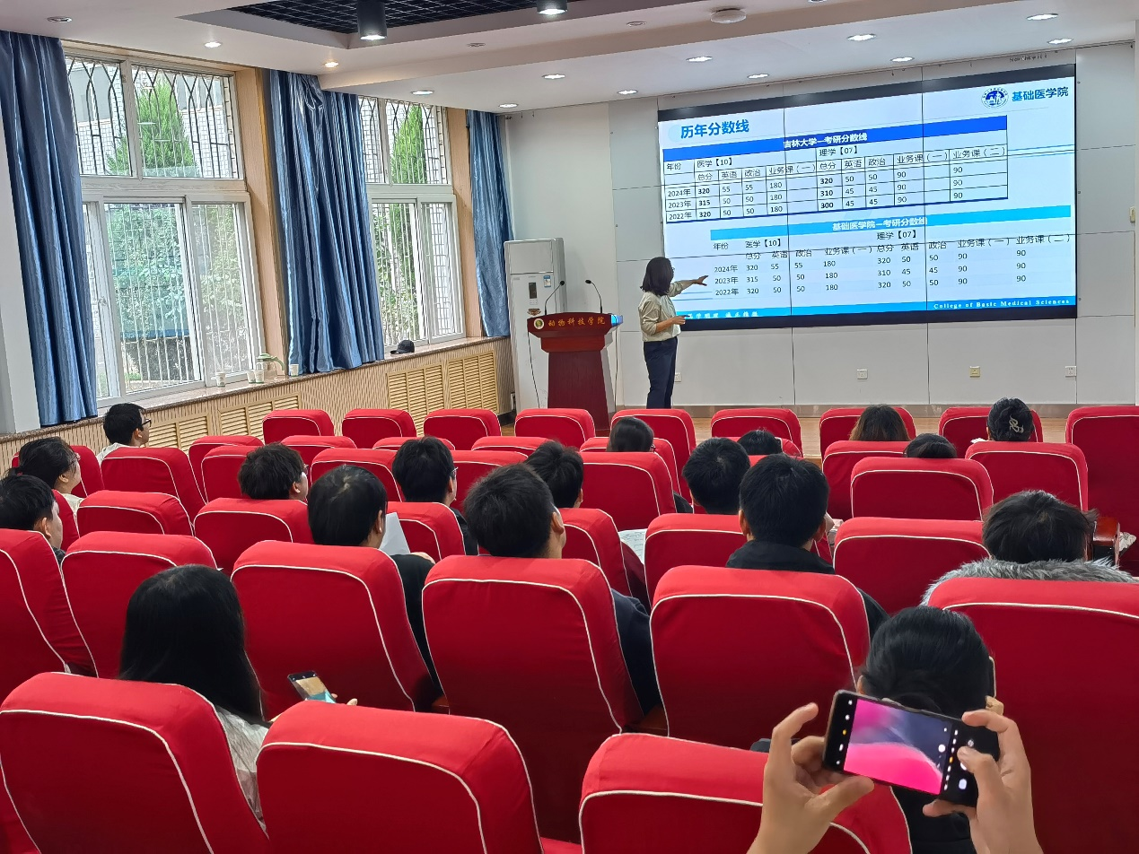 的招生专业、导师信息、报考流程等。同学们对专业方向选择、基础研究与临床应用的关系、录取率和历年分数线等相关问题进行了提问,招生宣传团队的老师们对学生提出的问题给予了细致的解答,鼓励优秀学生积极报考。